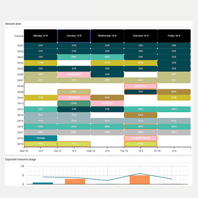 Optimizing planning requires an analysis of an integral real-time overview that takes all factors into account, including your shared resource usage. The key to solving this extremely complex puzzle begins much earlier in the hospital admission cycle. For example, before you can assign a patient to an OR, you must first schedule the OR session with the patient. And this level of planning must also take other “lower-level constraints” into account. Let’s say you are trying to schedule an orthopedic OR session. This can significantly affect bed utilization. A spine specialist wants to operate on a patient who requires three nights in the hospital. Whereas a knee specialist wants to operate on an average of five patients a day who only need a single overnight stay. Such choices heavily impact bed utilization over time.